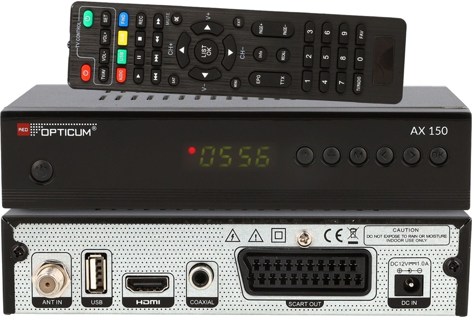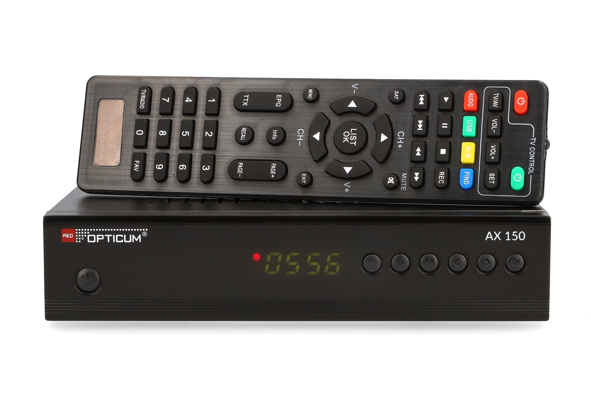 Dieser digitale HD-Satellitenreceiver OPTICUM RED AX 150 ist ein einfach bedienbarer Receiver zum Empfang aller freien TV– und Radiosender via Satellit, inklusive der in HDTV frei ausgestrahlten Programme in Full HD 1080p. Es stehen unzählige Anschlüsse zur Verfügung: Ein USB 2.0 Port, ein digitaler Tonausgang (COAXIAL), ein Scart-Anschluss - sowie einen HDMI-Anschluss. Optional kann über den USB-Port eine WiFi Antenne angeschlossen werden. Durch den Anschluss einer externen Festplatte oder eines USB-Sticks wird das Gerät zu einer Multimediastation zur Wiedergabe von Filmen, Bildern und Musik oder zur Aufnahme Ihrer TV-Sendungen. Ein USB-Speichermedium (externe Festplatte oder USB-Stick) ist nicht im Lieferumfang enthalten. Durch das externe 12V Netzteil eignet sich dieser Receiver auch ideal für Ihren Campingurlaub. Mit der lernbaren Fernbedienung können Sie die Schaltsignale Ihrer TV-Fernbedienung anlernen und damit Ihren TV steuern.