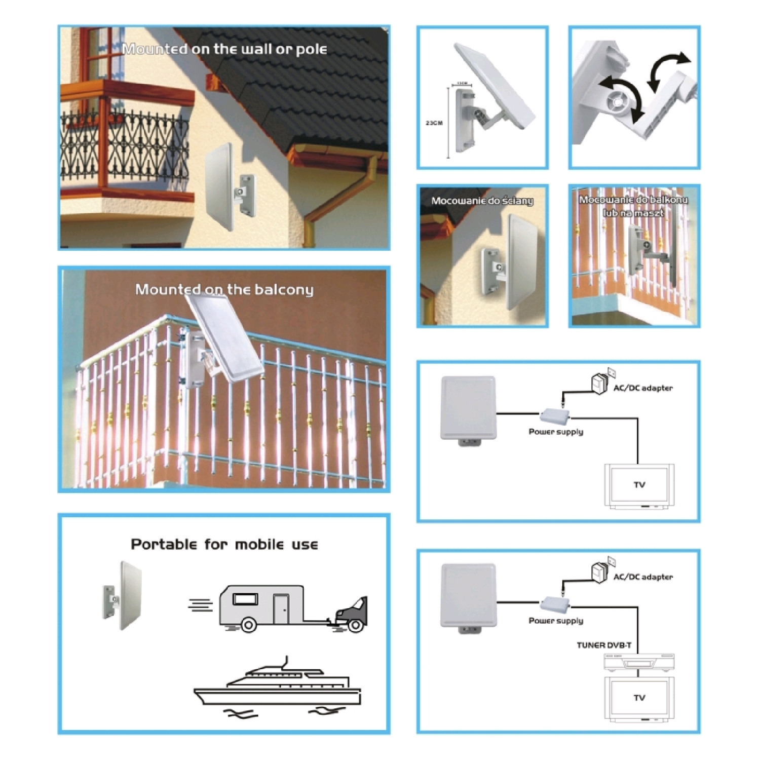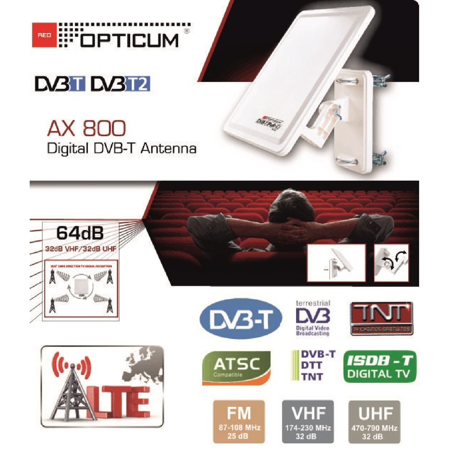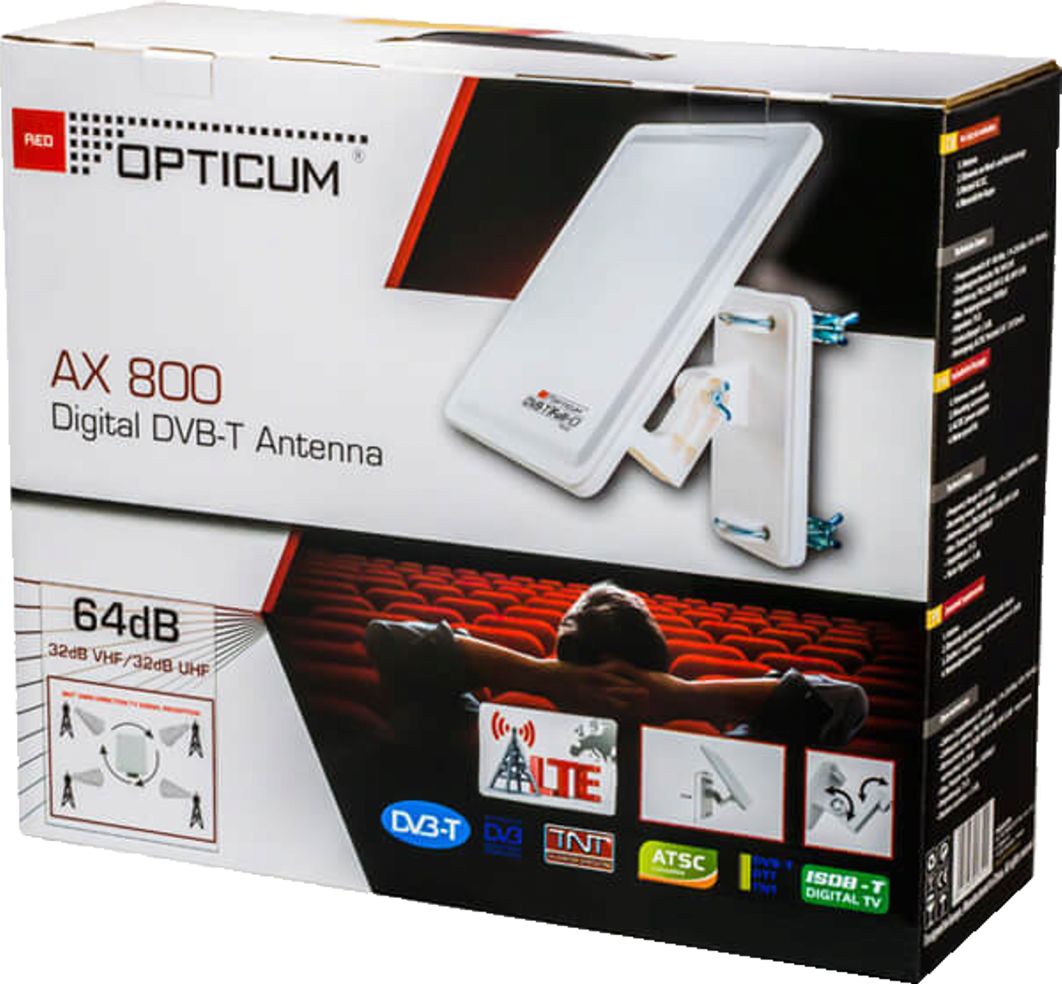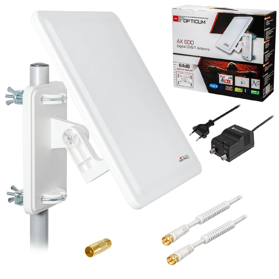 Diese extrem starke aktive DVB-T2/DAB/DAB+/UKW-Antenne eignet sich bestens für den Empfang digitaler terrestrischer Signale für zu Hause, Kleingärten/Wohnwagen oder für Unterwegs. Die Opticum AX-800 Antenne hat ein gegen UV-Strahlen beständiges Gehäuse und ist gleichzeitig wasserabweisend, so dass diese innen und außen eingesetzt werden kann. Die Antenne liefert eine Verstärkung in den Bereichen VHF +32 dB / UHF +32dB / UKW +25dB).