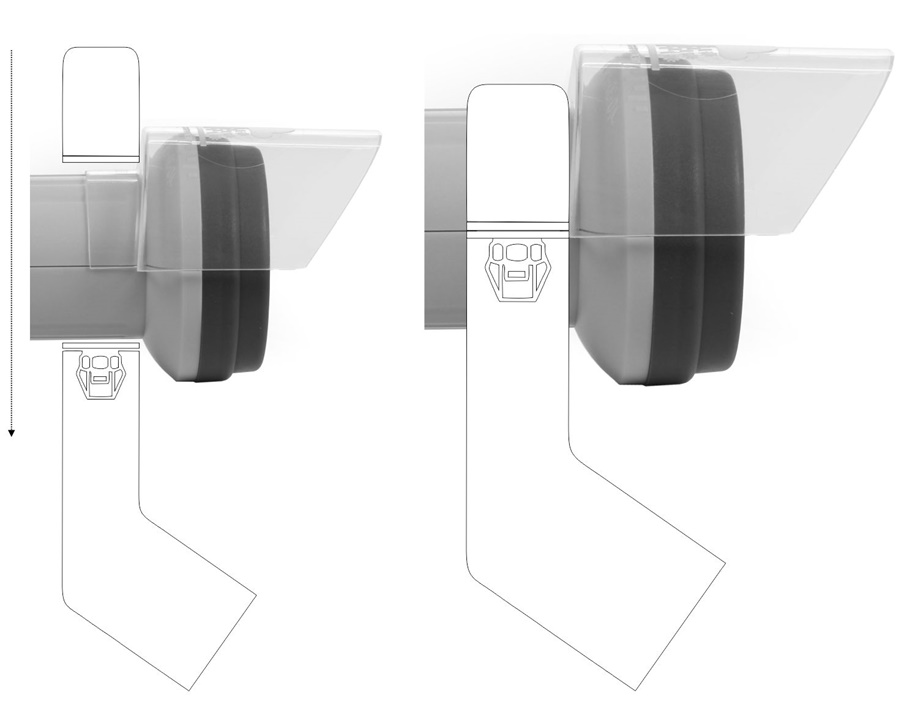 Die Wetterschutzkappe wird zwischen der oberen LNB-Halterung und dem LNB gesetzt. Durch das Verschließen der LNB Halterung wird die Wetterschutzkappe und das LNB fixiert und ist somit montiert. Ihr LNB o. die Halterung kann optisch von der Zeichnung abweichen. Hierbei handelt es sich ausschließlich um eine Beispielinstallation.