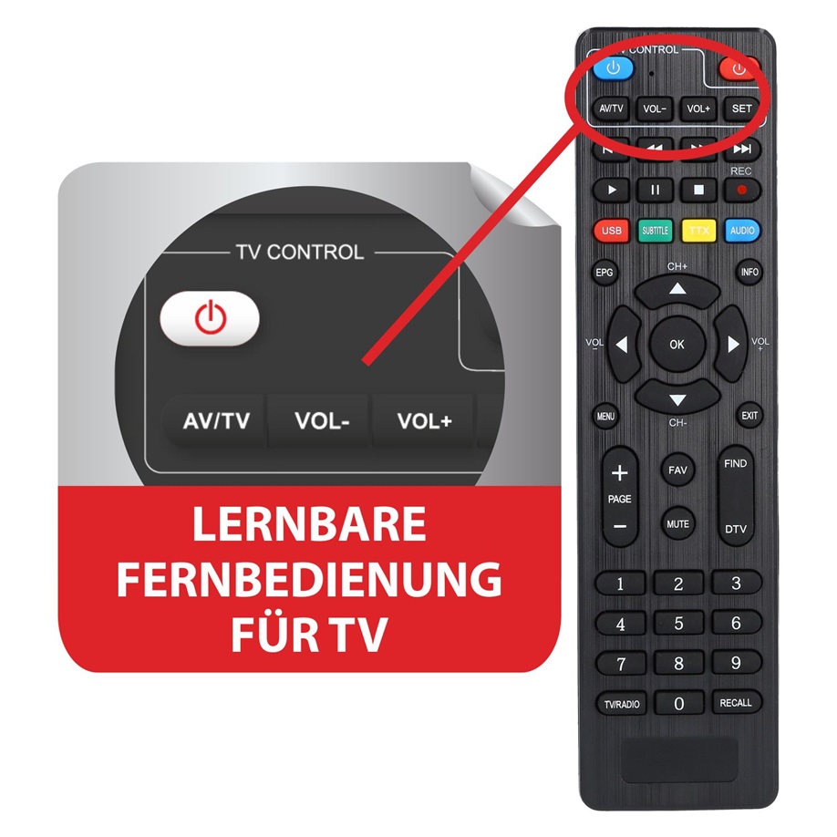 Dieser digitale HD-Satellitenreceiver ist ein einfach bedienbarer Receiver zum Empfang aller freien TV– und Radiosender via Satellit, inklusive der in HDTV frei ausgestrahlten Programme in Full HD 1080p. Durch den Anschluss einer externen Festplatte oder eines USB-Sticks wird das Gerät zu einer Multimediastation zur Wiedergabe von Filmen, Bildern und Musik. Ein USB-Speichermedium (externe Festplatte) ist nicht im Lieferumfang enthalten. Durch das externe 12V Netzteil eignet sich dieser Receiver auch ideal für Ihren Campingurlaub. Zum Lieferumfang gehört eine lernbare Fernbedienung mit der Sie Ihr TV-Gerät anlernen und steuern können - inklusive Batterien.