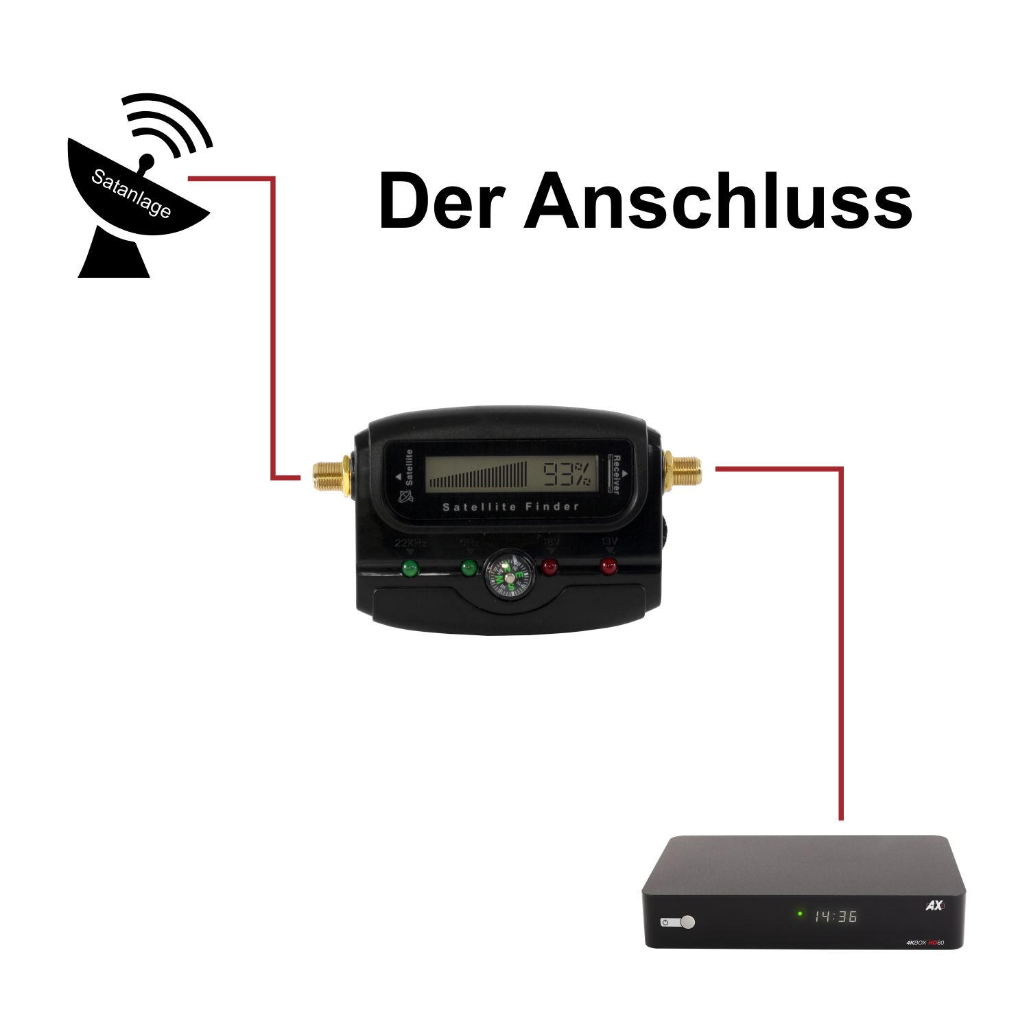 Dieser digitale SATFINDER OPS ONE von Opticum ist mikroprozessorgesteuert und dadurch zuverlässig und präzise. Die Signalstärke wird auf einer LCD Anzeige grafisch in Form einer Thermometerskala und in Zahlen (0-99) angezeigt. Darüber hinaus kann das Gerät über einen Summer hohe Töne abgeben (je höher der Ton, desto besser das Signal). Dieser digitaler SATFINDER ist sehr empfindlich und kann auch das schwächste Signal erkennen. Starke Eingangssignale (durch leistungsfähigen Satelliten, große Satellitenschüssel) können zu einem besseren Auslesen problemlos abgeschwächt werden.