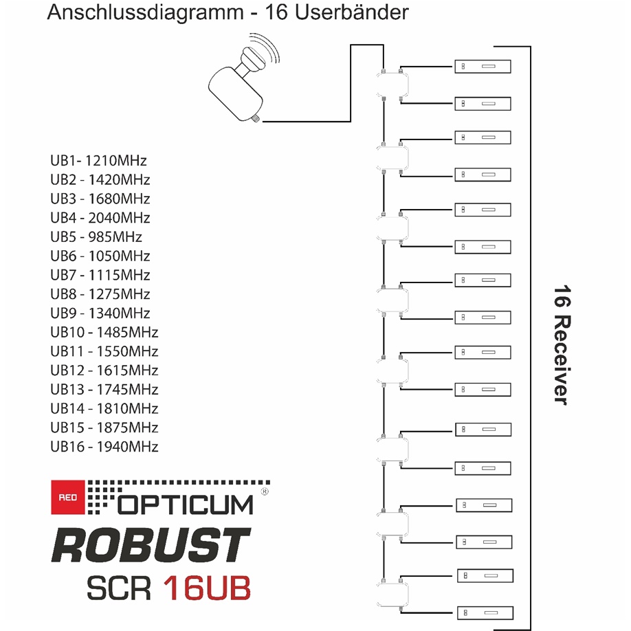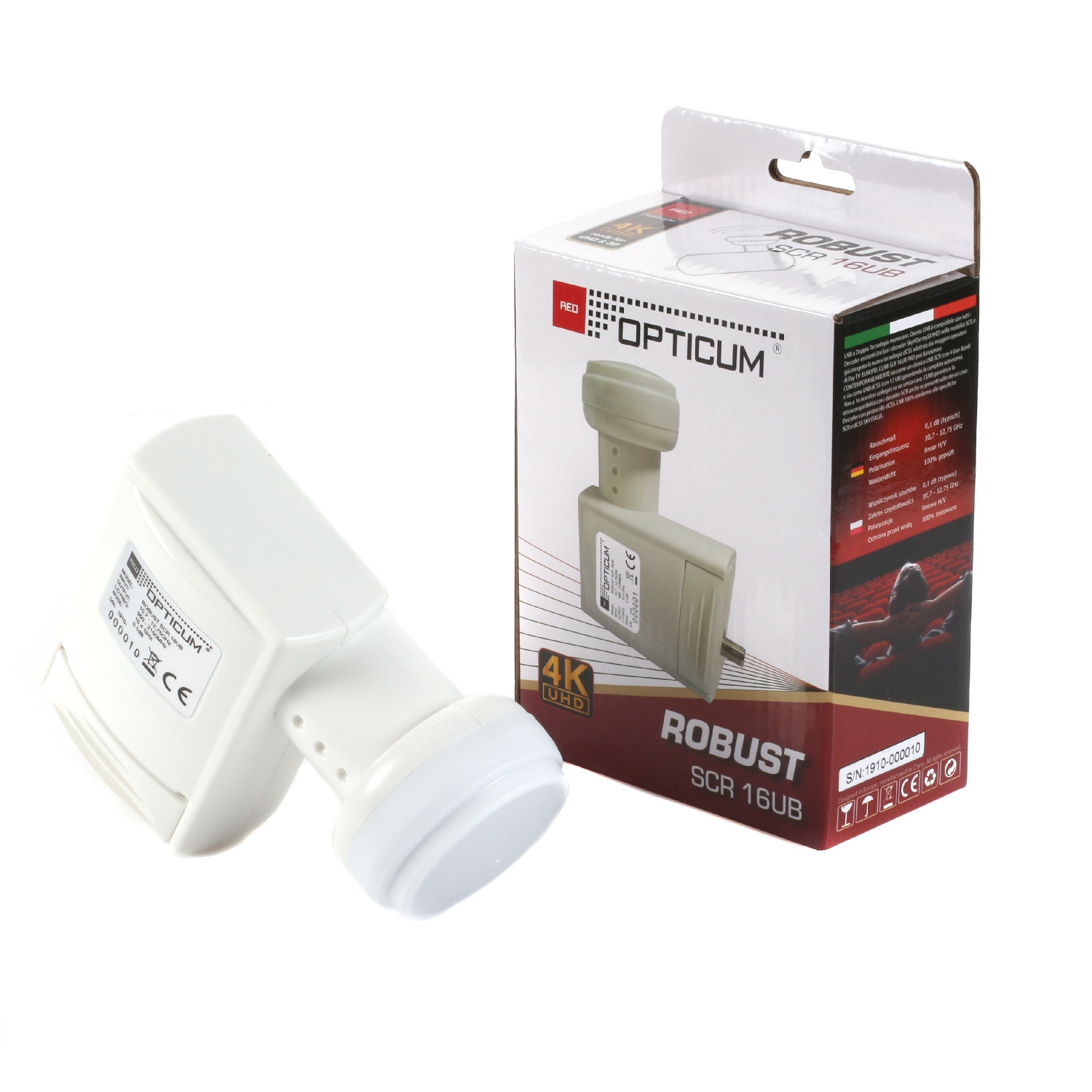 Mit diesem SCR-LNB (Einkabel-LNB) erhalten Sie die Möglichkeit 16 Teilnehmer über nur ein Koaxkabel (Receiver müssen über Einkabelfunktion verfügen) zu versorgen. Zur Steuerung der SCR Einkabellösung müssen die angeschlossenen Satellitenreceiver das Satellite Channel Routing (SCR/CSS-Steuerbefehlen nach EN50494/EN50607) bzw. den Unicable Befehlssatz unterstützen. Der Konverter kann kann für verschiedene Satelliten, wie für Astra, Hotbird, Eutelsat, Türksat, etc. eingesetzt werden. Das LNB stellt für die Einkabellösung 16 verschiedene umgesetzte Ausgangsfrequenzen zur Verfügung. Dabei stehen sämtlichen Teilnehmern alle Programme sowie das gesamte Frequenzspektrum eines Satelliten zur Verfügung. Das LNB besitzt eine herausziehbare Wetterschutzkappe zum Schutz Ihrer Anschlüsse. Das Gehäuse ist extrem hitze- und kältebeständig.